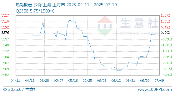 7月10日生意社热轧板卷基准价为3276.67元/吨