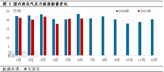 国内6月份压力船装船量连续第二个月出现回升,但仍低于去年均值,7月份装船量或有轻微下降。