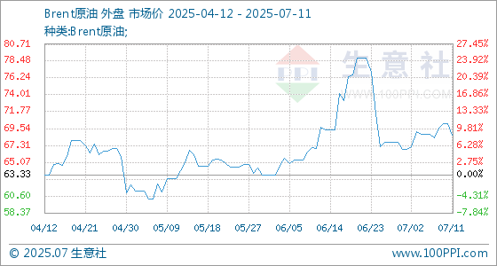 7月11日生意社Brent原油基准价为70.19美元/桶