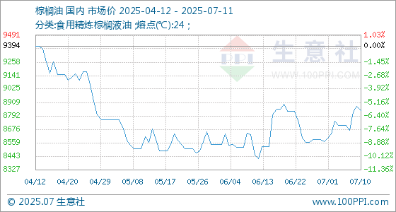 7月11日生意社棕榈油基准价为8836.00元/吨