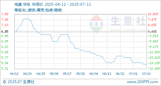 7月11日生意社鸡蛋基准价为5.50元/公斤