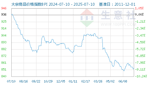 7月10日大宗商品价格指数BPI为853点,较昨日上升了136.49%29.24%