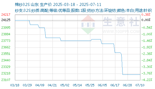 据生意社商品行情分析系统显示:本周成本上涨,棉纱市场反响平平,走货缓慢价格暂稳。截至7月11日,国内山东地区21S纯棉环锭纺现货价格参考21765元/吨左右,与上周持平;32S纯棉环锭纺现货价格考在23200元/吨左右,与上周持平。