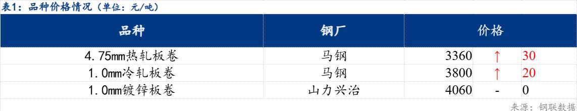 今日合肥镀锌及冷轧板卷价格稳中小幅上涨。价格方面:冷轧板卷价格较上一交易日上涨20元/吨,1.0mm马钢价格3800元/吨;镀锌板卷价格较上一交易日持平 ,1.0mm山力兴治价格4060元/吨。市场方面,今日热卷期货盘面延续偏强运行,早间市场报价小幅跟涨,盘中交易氛围一般。成交方面,因当前淡季终端需求并无增量,基本按需采购,全天成交一般。心态方面,据市场商户反馈,当前淡季终端实际需求变化不大,期货拉涨下现货以出货为主,订货谨慎。