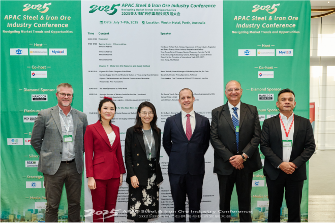 期货日报网讯(记者饶红浩)2025年7月8日,由中国国际贸易促进委员会冶金行业分会、澳大利亚中国总商会珀斯分会与上海钢联电子商务股份有限公司联合主办,澳大利亚中国工商业委员会西澳分会协办的2025亚太铁矿石供需与投资发展大会在全球铁矿石重要产地澳大利亚珀斯召开。中信期货受邀参会并做主题演讲。