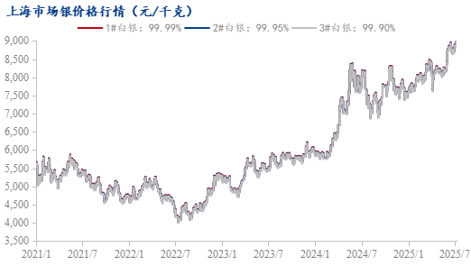 2025年7月11日,Mysteel上海地区1#白银现货均价报9020元/千克,涨170元/千克;沪银主力合约涨1.74%,报9040元/千克;COMEX银涨3.21%,报37.99美元/盎司;伦敦银现货涨1.91%,报37.26美元/盎司;美国10年期国债收益率报4.386%,美元指数报97.75。