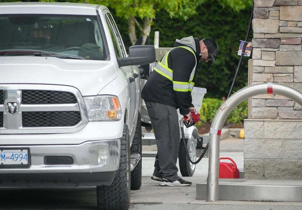 ▲5月20日,一名男子在加拿大温哥华一处加油站为汽车加油。新华社发(梁森摄)