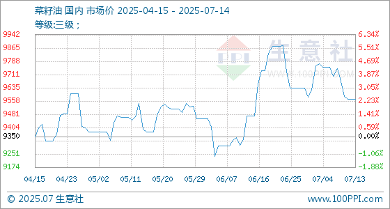 7月14日生意社菜籽油基准价为9568.33元/吨
