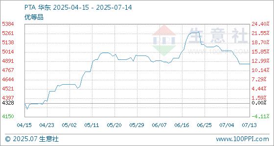 7月14日生意社PTA基准价为4852.50元/吨