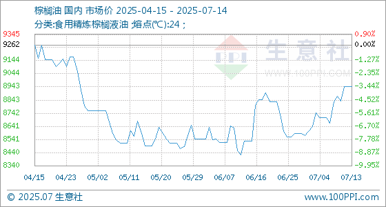 7月14日生意社棕榈油基准价为8944.00元/吨