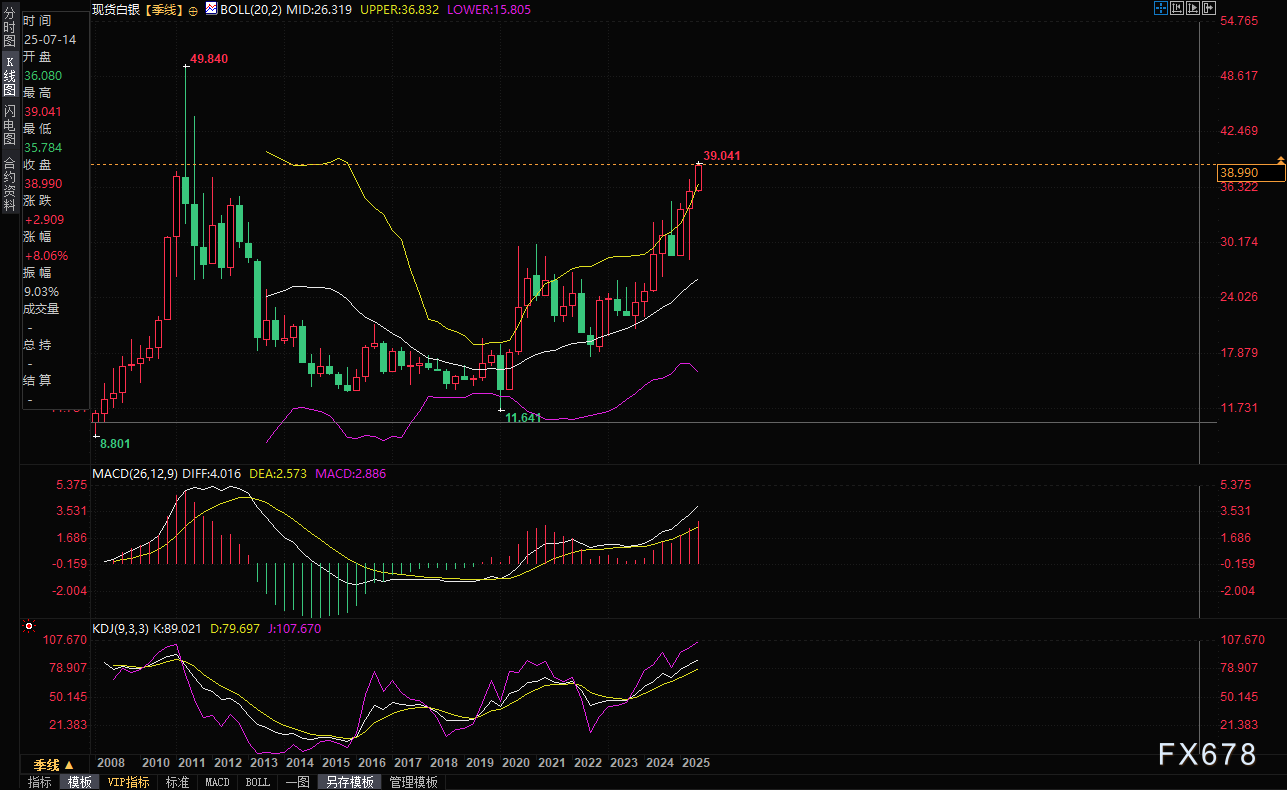 Streible指出,白银正受益于金价和铜价的上涨。这种灰色金属既被视为一种重要的货币资产,也被视为一种工业商品。上周,在特朗普总统出人意料地宣布对铜进口征收50%的关税后,铜价出现了历史上最大的单日涨幅,飙升了约13%。