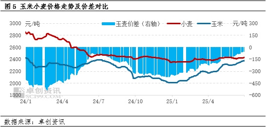 饲用需求方面,受玉米价格上涨以及豆粕价格阶段性攀升等因素影响,小麦对玉米替代优势提升,饲用需求量有所增长,但新季小麦上市前整体增量有限,难以扭转供大于求格局。新麦上市后部分饲料企业采购积极性较高,但新粮集中供应市场,饲用需求增量暂未对新年度市场供需格局起到决定性影响。