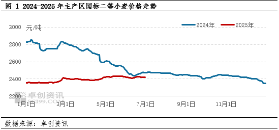 【导语】2025年上半年小麦市场供应整体偏宽松,下游需求相对疲弱,价格上行存阻力,呈现震荡缓慢上移态势。展望下半年,新季小麦集中上市,货源充沛,制粉需求难有起色,饲用需求同比或增,最低收购价小麦收购总量或为影响下半年价格走势的主要变量,预计三季度先跌后涨再跌,四季度震荡缓涨。