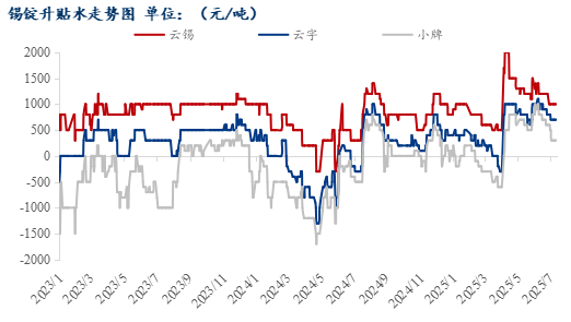今日套盘商对沪锡2508合约套盘云锡升水1000元/吨左右,普通云字升水600-800元/吨左右;小牌升水300元/吨左右,进口锡贴水400元/吨左右。