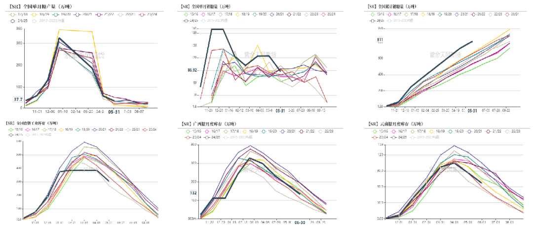 国内产销:偏多 截至5月底,全国累计产糖1116万吨,同比增120万吨;累计销糖811万吨,同比增152万吨;销售进度72.7%,同比加快6.5个百分点。