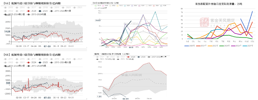 内外后期主要关注正套,主要驱动在于,进口糖放量后导致国内现货价格下行。