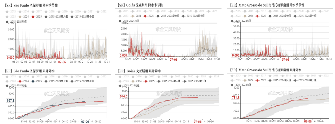2025/26榨季截至6月上半月,巴西中南部地区累计入榨量为16357.5万吨,较去年同期的19093.7万吨减少2736.2万吨,同比降幅达14.33%;甘蔗ATR为119.6kg/吨,较去年同期的125.29kg/吨减少5.99kg/吨;累计制糖比为50.45%,较去年同期的48.33%增加2.12%;累计产糖量为940.4万吨,较去年同期的1101.6万吨减少161.2万吨,同比降幅达14.63%。