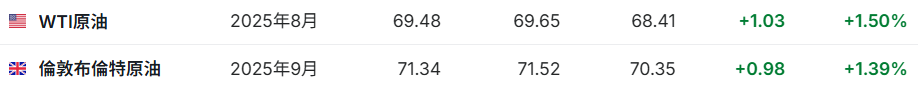 3. 截至发稿,WTI原油涨1.50%,报69.48美元/桶。布伦特原油涨1.39%,报71.34美元/桶。