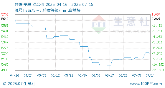 7月15日,生意社硅铁基准价为5202.86元/吨,与本月初(5158.57元/吨)相比,上涨了0.86%。