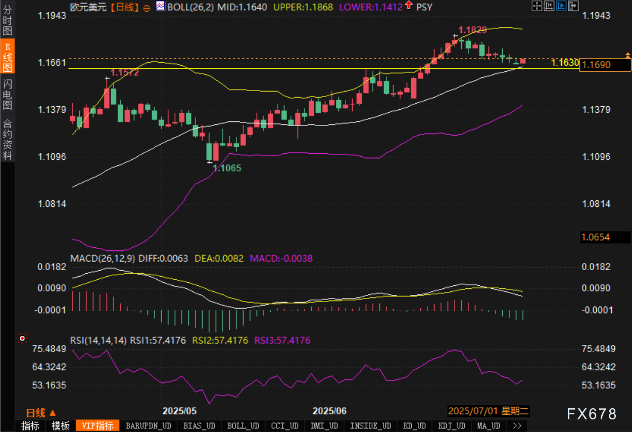 周二(7月15日),欧元兑美元(EUR/USD)在连续四个交易日下行后小幅反弹,重新站上1.1655上方。汇价此前创下近四年高点1.1829后持续回撤,整体仍处于宽幅盘整与回调态势。近期欧洲与美国官员持续磋商,以避免美国总统特朗普宣布的30%征税方案,市场亦紧盯即将公布的美国6月消费者物价指数(CPI),加之特朗普对美联储主席的再度施压,使得美元短期内走势趋软,进一步支撑欧元反弹。