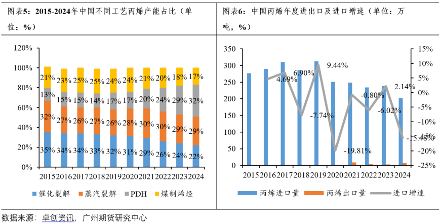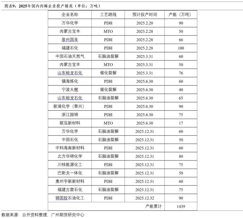综合来看,因中国PDH产能集中释放,2025年全球丙烯产能预计超1.69亿吨,而需求约1.1亿吨,丙烯面临供需过剩压力。