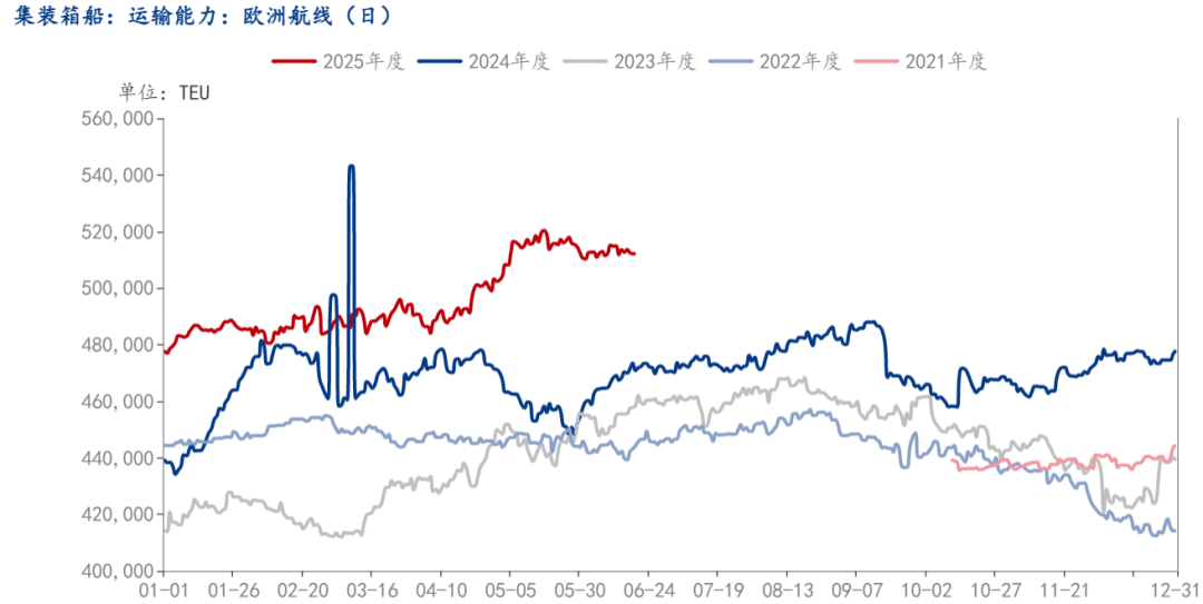 (3)市场情绪方面,7-8月通常为传统航运旺季,考虑到关税暂缓窗口期,今年有可能提前,美线业务回流明显,但尚未出现全面爆舱,欧线货量相对平稳,且运输能力一直维持高位,供应链处于饱和状态,还需观察实际货物情况。
