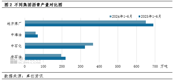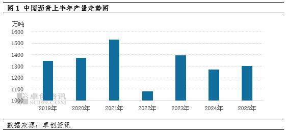 2025上半年,吉林石化投产沥青产能并稳定生产,加之个别炼厂沥青产能扩张,国内沥青产能增长至8270万吨/年。但沥青产能利用率依旧不足,卓创资讯数据统计,上半年中国沥青产量为1303.23万吨,同比增加31.73万吨或2.50%。