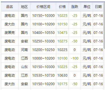 1、【市场】安徽A回收商:废电动收货价9950元/吨,货量一般;