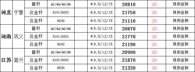 7月16日宁晋市场普铝杆现货报盘价20810元/吨,较上一交易日报价涨10元/吨;巩义市场普铝杆现货报盘价20870元/吨,较上一交易日报价涨10元/吨;宜兴市场普铝杆报盘价20900元/吨,较上一交易日报价涨10元/吨。