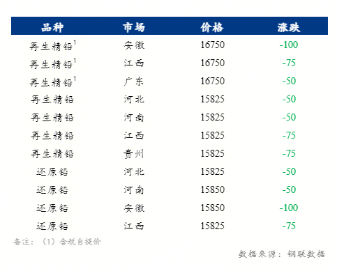 7月16日,铅价下跌100元/吨,再生铅企市场报价下调50-100元/吨,其中市场还原铅价报15825-15850元/吨,再生精铅价格报15825-15850元/吨出厂,含税普遍报至平水,价格报16750元/吨出厂。