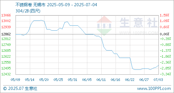 7月4日生意社不锈钢卷基准价为12530.67元/吨