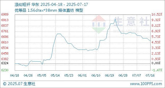 7月17日生意社涤纶短纤基准价为6633.96元/吨