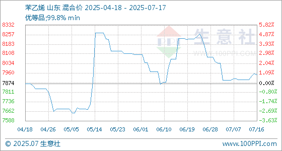 7月17日生意社苯乙烯基准价为7946.00元/吨