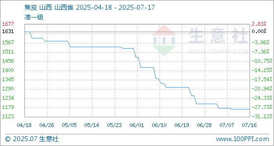 7月17日,生意社焦炭基准价为1170.00元/吨,与本月初(1200.00元/吨)相比,下降了2.5%。