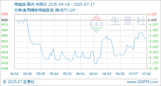 7月17日生意社棕榈油基准价为8864.00元/吨