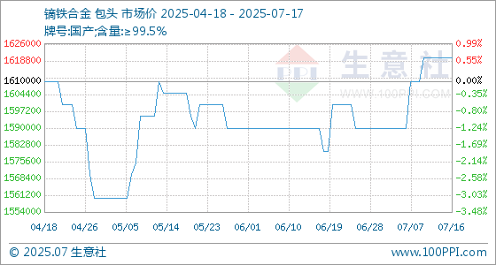 7月17日生意社镝铁合金基准价为1620000.00元/吨