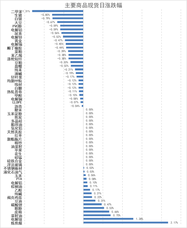 7月16日,卓创资讯监测商品现货市场16种上涨、27种下跌,16种企稳。焦煤供应端存在收缩预期,价格偏强。二甲苯市场库存低位但未来新装置投产压力下价格延续下行。(价格涨跌幅均以卓创资讯监测现货商品均价或主流市场价格计算)