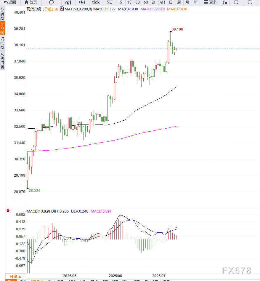 当前银价走势处于多空博弈关键阶段,一方面美欧贸易谈判若顺利推进,可能缓和部分避险需求;另一方面,通胀预期持续升温,仍将为贵金属提供中长期支撑。