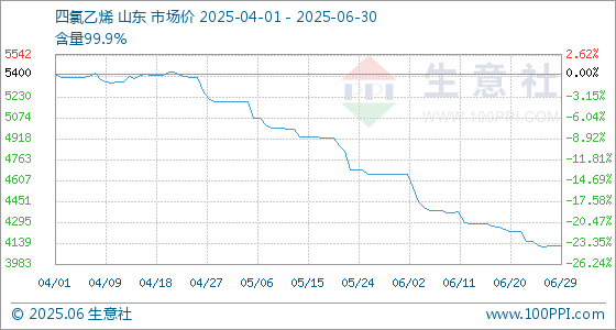 6月30日生意社四氯乙烯基准价为4122.73元/吨