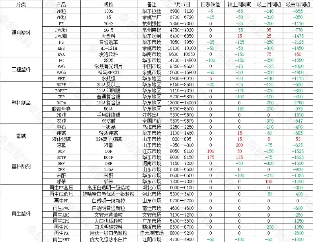 备注:以上表中所取价格为各产品代表市场或是代表区域价格,更多市场价格及详情内容请关注卓创资讯各产品网站或手机客户端。
