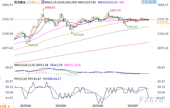 北京时间7月18日12:10 现货黄金 报 3335.91 美元/盎司