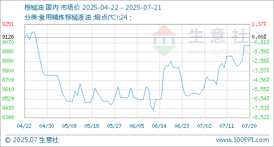7月21日生意社棕榈油基准价为9048.00元/吨