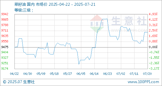 7月21日生意社菜籽油基准价为9691.67元/吨