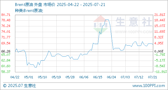 7月21日生意社Brent原油基准价为69.52美元/桶