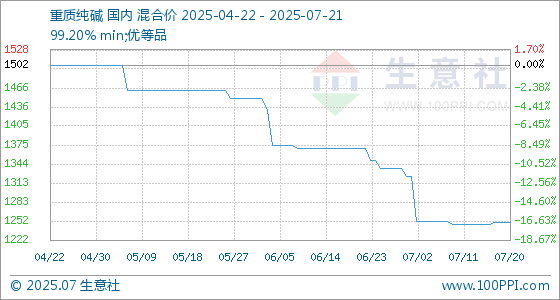 7月21日生意社重质纯碱基准价为1250.00元/吨