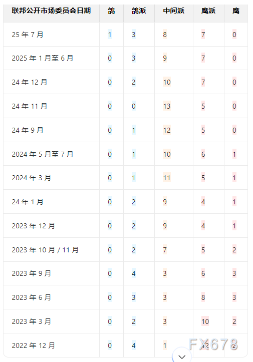 (近期美联储会议召开前对各类别政策制定者的统计)