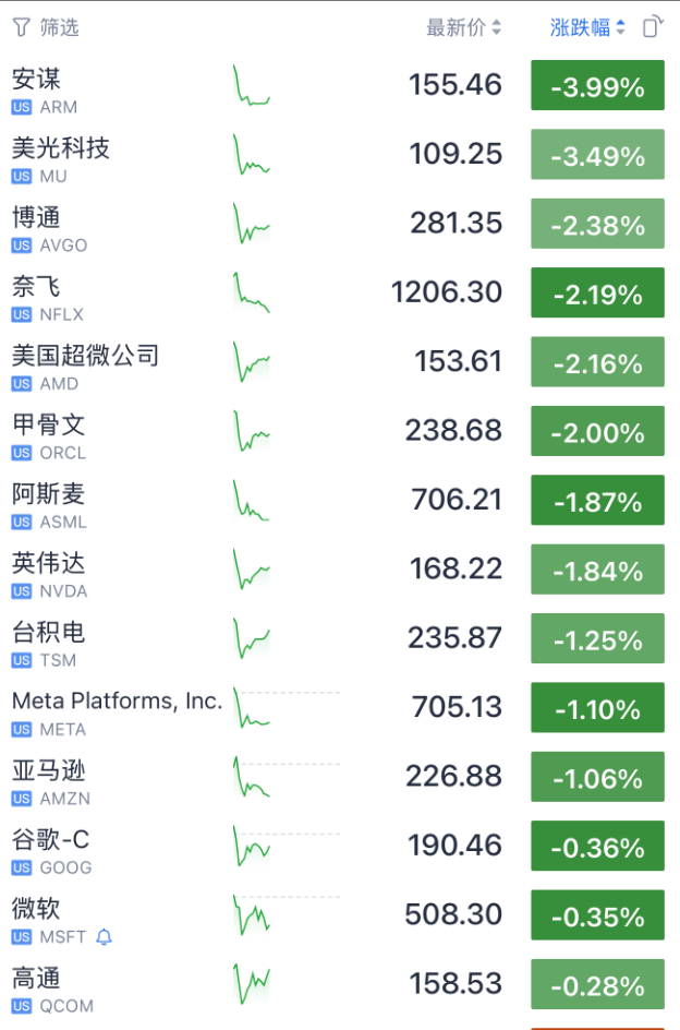 今晚美股主要受到了芯片股的下跌拖累,AI热门股英伟达和博通股价均下跌约2%。此前有报道称,软银与OpenAI合作推动的5000亿美元AI项目启动受阻,近期计划被迫缩减,加剧了投资者对该板块的悲观情绪。