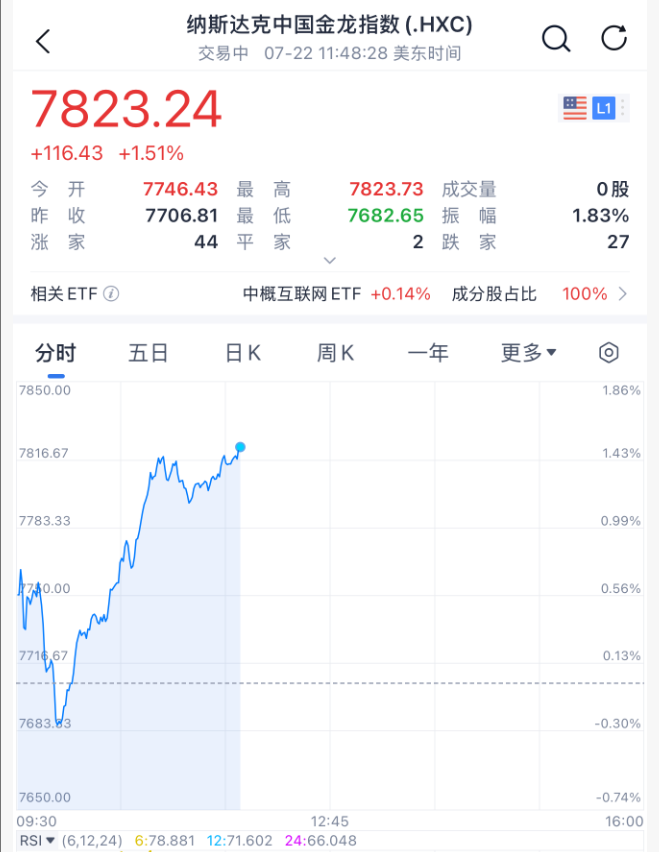 7月22日晚间,美股开盘之后,道琼斯指数基本持平,纳斯达克指数、标普500指数盘出一度大幅度跳水。