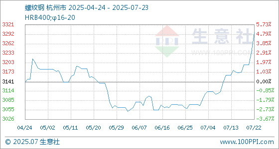 7月23日生意社螺纹钢基准价为3297.00元/吨