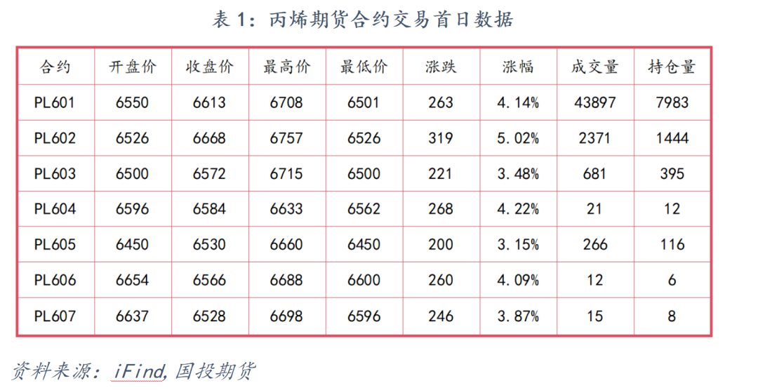 7月22日丙烯期货在郑商所上市,首批合约为PL2601、PL2602、PL2603、PL2604、PL2605、PL2606、PL2607。